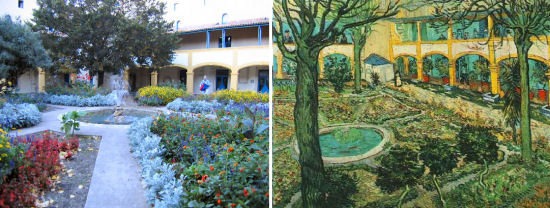 亞耳的古羅馬遺跡在圓環旁,與梵谷割傷耳朵後住的療養院距離很近,導遊看看時間差不多了,帶著我們走路過去。底下這就是梵谷受傷後療養,並且深受亞耳當地居民排斥的療養院所在,他在這裡畫過許多庭園美景,當然現在這裡也是靠著恢復畫作當年樣貌大賺觀光財的。